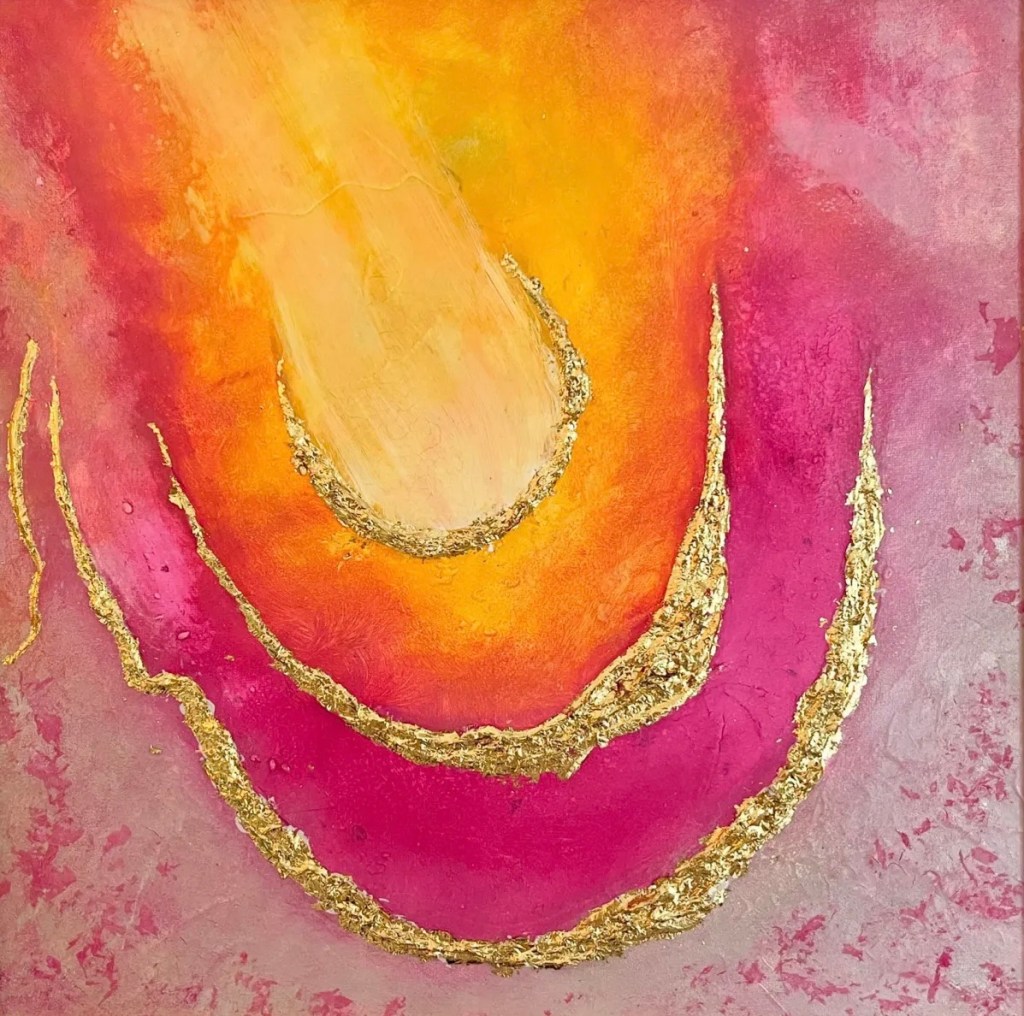 Acryl und Blattmetall auf Leinwand