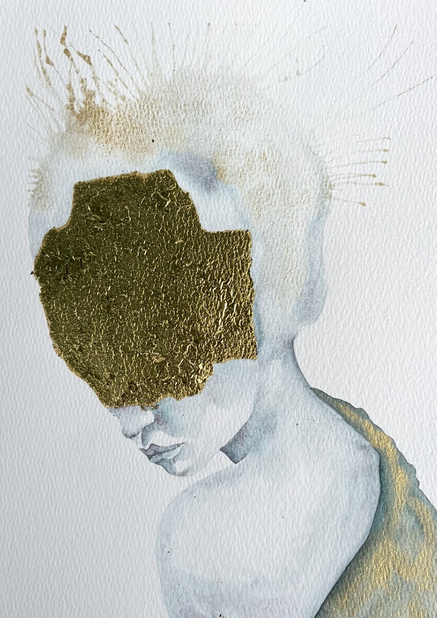 Aquarell und Blattmetall auf Papier